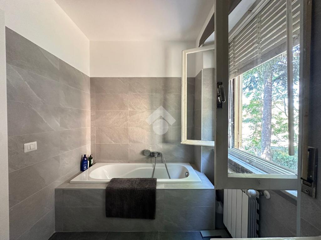 -E due bagni finestrati, uno con vasca e uno con doccia.