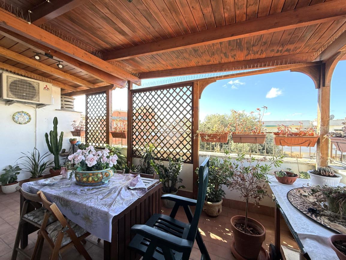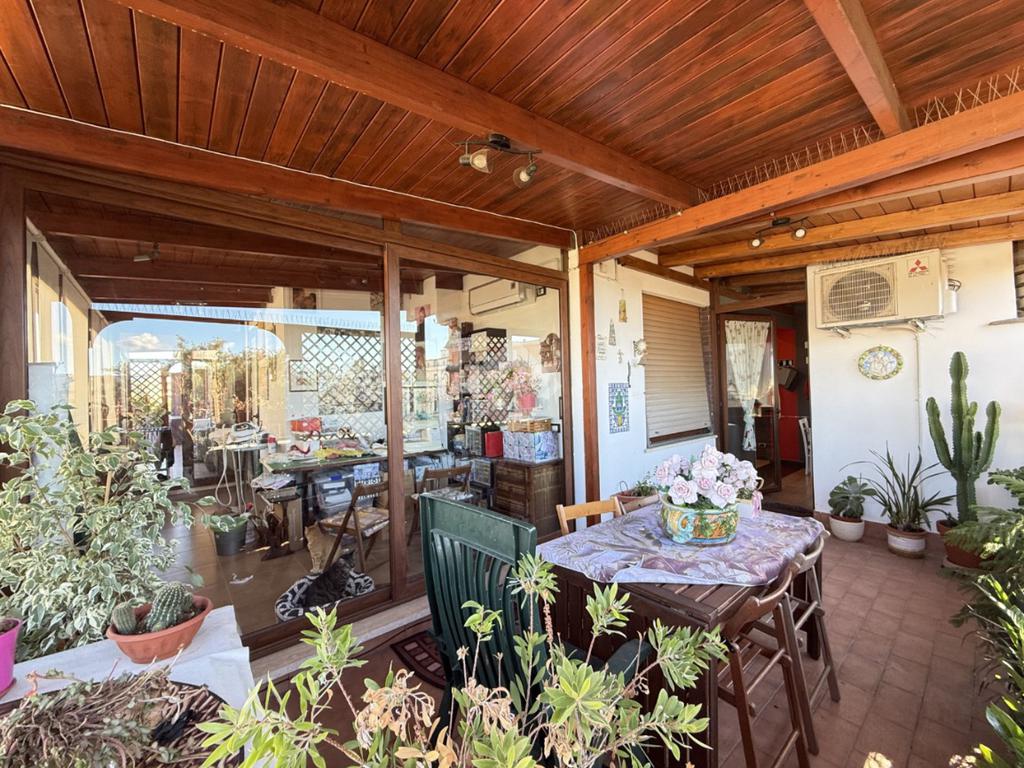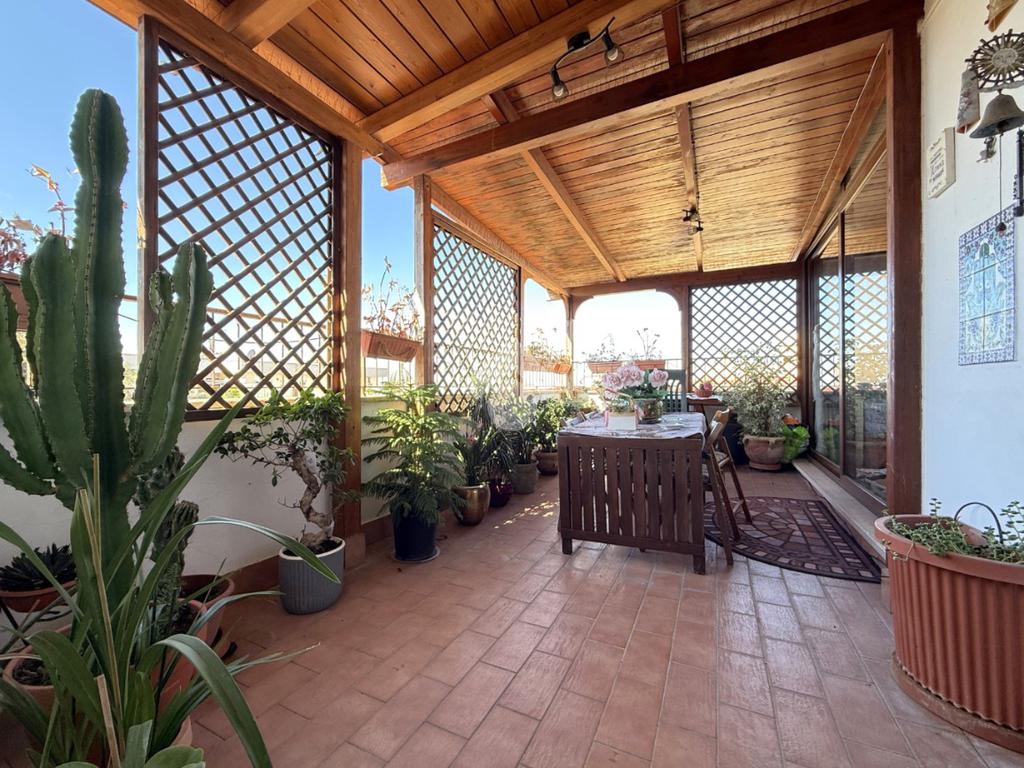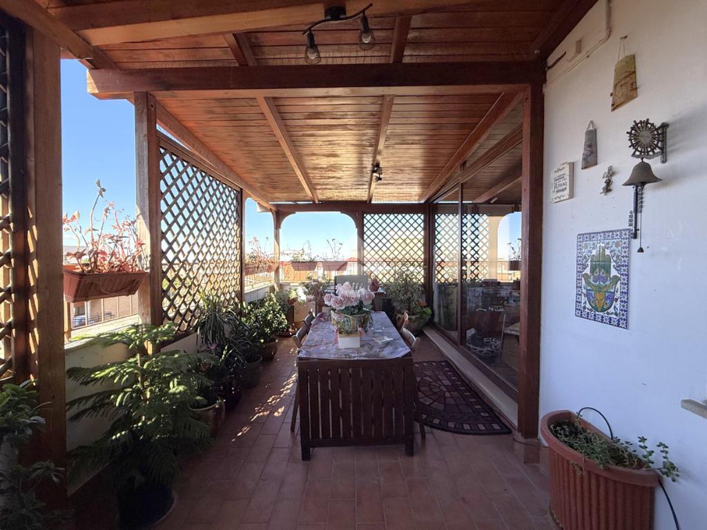 L'abitazione si sviluppa su una superficie calpestabile di 150 mq interni, possiede UNA meravigliosa TERRAZZA che la circonda agli entrambi i lati, in parte chiusa e in parte aperta, doppia esposizione (SUD/OVEST - NOR/OVEST) e si compone di: